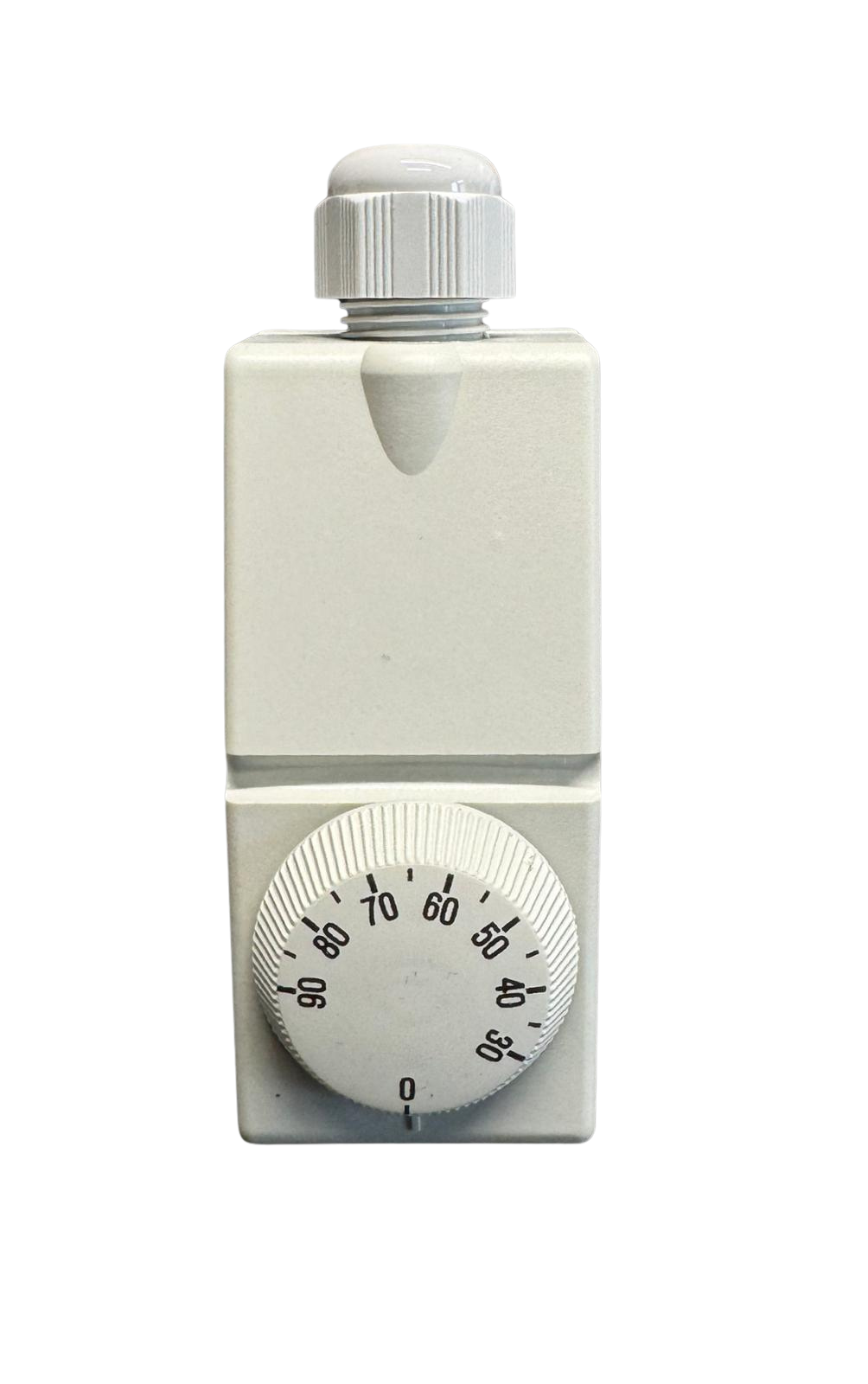 Termostato a contatto per tubature regolazione 10/90° C ad espansione di liquido con passacavo e molla a fascetta. Impiegato per caldaie, bollitori, ed altre apparecchiature per le quali sia necessario regolare la temperatura.